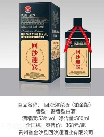 130元每箱贵州金沙回沙迎宾酒铂金版