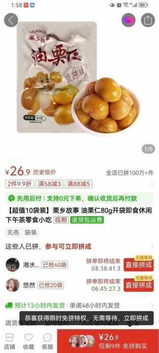 油栗仁 100箱起订箱规 80克130袋新日期 山东提货