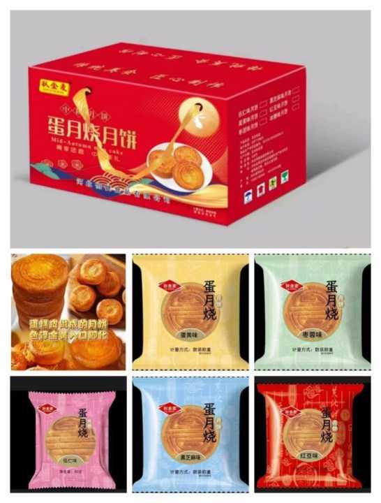 新日期蛋月烧月饼1块80克,50块装,出厂价格5种口味,独立
