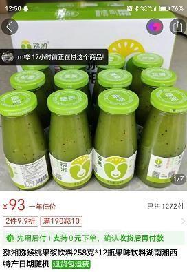 一块多每瓶猕猴桃果浆饮料5800箱